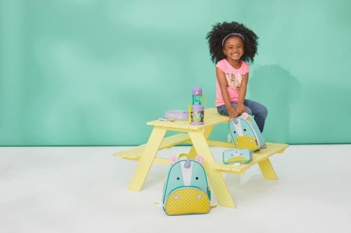 - Główny bohater aplikacji – Pszczółka, Piesek, Biedronka, Małpka i Sowa – występuje również na innych akcesoriach SKIP HOP. Termos można więc skompletować z plecakiem, śniadaniówką, bidonem