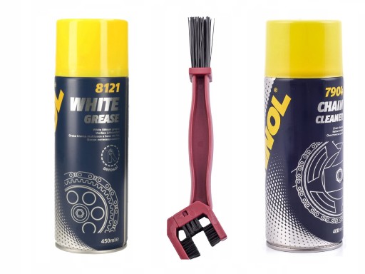 Zestaw do czyszczenia smarowania łańcucha Mannol czyścik + smar + szczotka