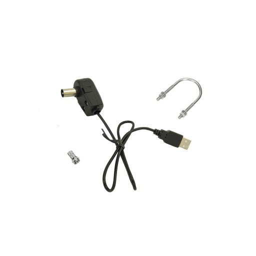 - W zestawie: przewód zasilający USB + wtyk F na przewód koncentryczny
