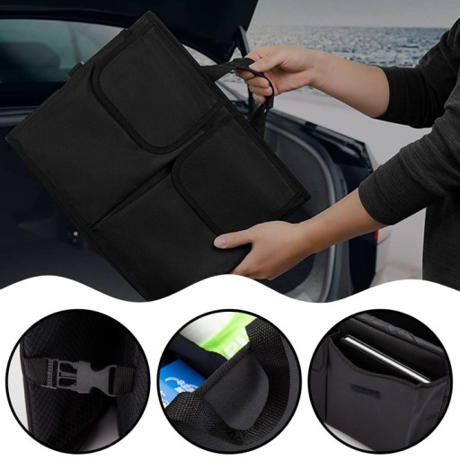 Prezentujemy składany organizer do bagażnika, wyposażony w praktyczne uchwyty, które umożliwiają łatwe przenoszenie. Dzięki nim, nasz organizer zamienia się w funkcjonalną torbę, co pozwala utrzymać porządek w bagażniku i szybko zabrać potrzebne przedmioty. Wygodne uchwyty do przenoszenia organizera zapewniają komfort podczas przemieszczania się. Bez wysiłku możesz wziąć ze sobą organizer, który zawiera uporządkowane przedmioty. Nie musisz już wypakowywać rzeczy z bagażnika, wystarczy wziąć cały organizer i cieszyć się łatwością i szybkością podróżowania.