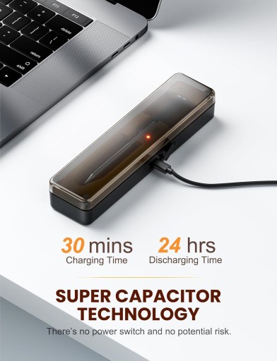 Materiał bezpieczny dla żywności: Ten bezprzewodowy termometr do smażenia składa się z sondy wykonanej z przeznaczonej do kontaktu z żywnością stali nierdzewnej 304 i odpornego na wysokie temperatury, przyjaznego dla środowiska tworzywa PEEK, które jest nietoksyczne i bezpieczne w kontakcie z żywnością. Ładowanie za pomocą złącza typu C (kabel do ładowania wchodzi w zakres dostawy), czas ładowania 5-10 minut, może chodzić 4 godziny.