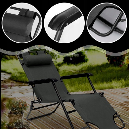 2x CZARNY FOTEL SKŁADANY LEŻAK TARASOWY PLAŻOWY 173CM