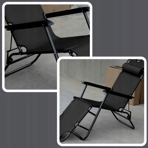 2x LEŻAK SKŁADANY NA TARAS DO OGRODU CZARNY METALOW LEŻANKA SKŁADANY 173cm