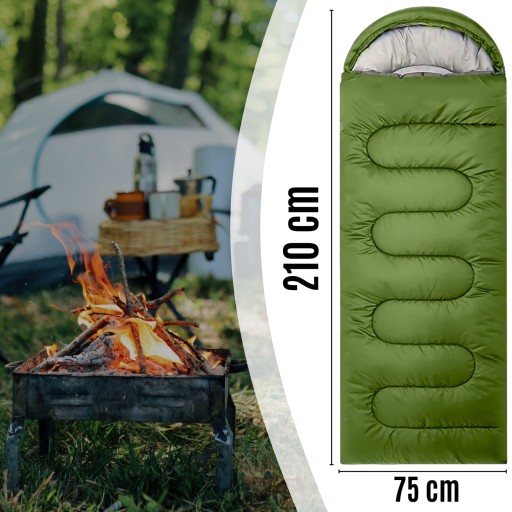 ŚPIWÓR LEKKI TURYSTYCZNY TYPU KOŁDRA Z KAPTUREM CIEPŁY + POKROWIEC 210 cm