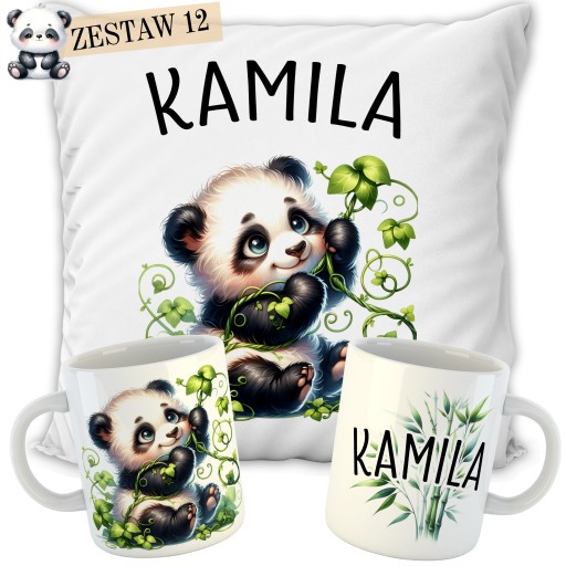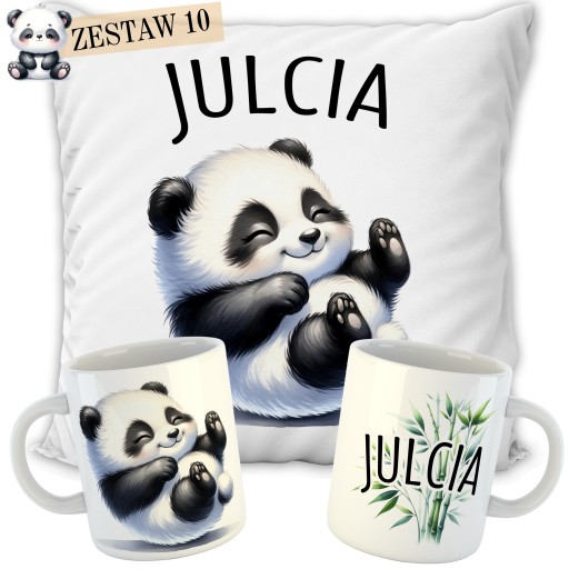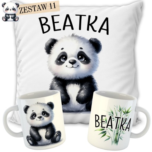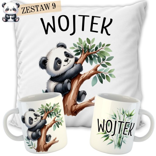WYJĄTKOWY, UROCZY ZESTAW PODUSZKA + KUBEK Z MOTYWEM PANDY + TWOJE IMIĘ!