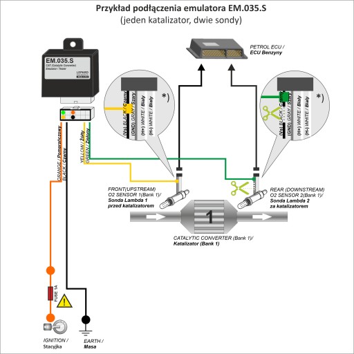 Emulator zastępuje sygnał z sondy lambda za katalizatorem swoim sygnałem, dzięki czemu sterownik ECU silnika otrzymuje optymalną informację o pracy katalizatora.