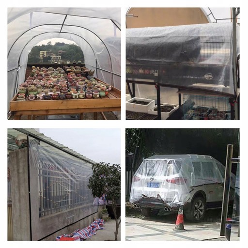 Wykonana z wysokiej jakości NOWYCH materiałów PE i optymalnie nadaje się do przykrywania i ochrony drewna, samochodów, motocykli, łodzi, basenów itp. w taki sposób, że są one chronione przed wilgocią, brudem i pogodą. Ze względu na wysokiej jakości materiały, plandeki wytrzymują wszelkie warunki atmosferyczne. Ekstremalne promieniowanie słoneczne, wiatr, mróz i grad nie mają wpływu na materiał.0.12mm plandeki przeźroczyste tworzywo sztuczne folia przeciwdeszczowa roślina ogrodowa pokrywa Pergola meble wodoodporna pokrywa okno wiatroszczelna tkanina