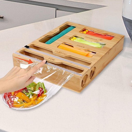 [Szerokie zastosowanie]: możesz umieścić nasz dozownik folii w szufladzie lub powiesić go na ścianie do przechowywania toreb do przechowywania żywności, folii, opakowania i papieru.