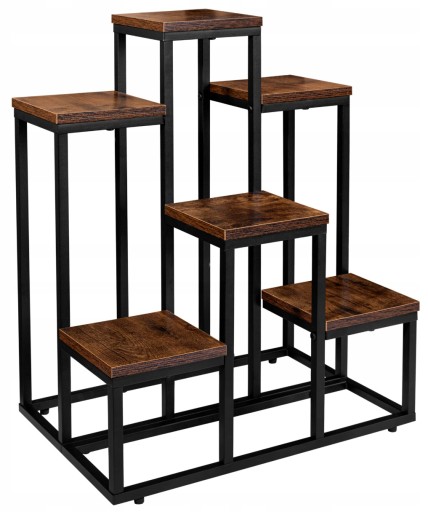 - Połączenie czarnej metalowej konstrukcji z blatami w kolorze postarzanego dębu tworzy elegancki i modny design, który podkreśli wyjątkowy charakter każdej rośliny.