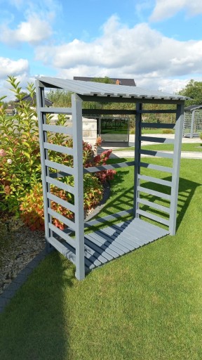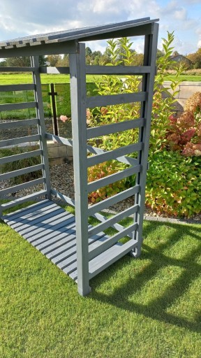 Drewutnia ogrodowa przeznaczona na suszenie drewna kominkowego, wykonana jest z drewna sosnowego.