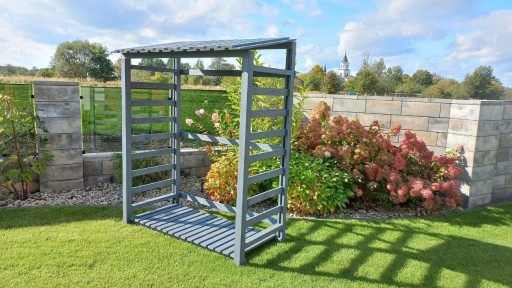 Drewutnia ogrodowa przeznaczona na suszenie drewna kominkowego, wykonana jest z drewna sosnowego.