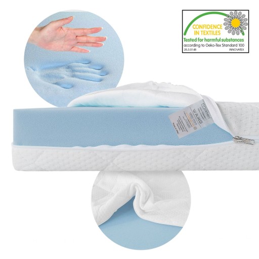 Ten materac dziecięcy pozwala dzieciom uzyskać zasłużony spokojny sen, którego potrzebują. Materac z zimnej pianki zapewnia zdrowe podparcie dla głowy, szyi, pleców i nóg. Rdzeń materaca jest wykonany z wysokiej jakości hipoalergicznej zimnej pianki, dzięki czemu jest idealny dla alergików. Jeśli materac ulegnie zabrudzeniu, można po prostu zdjąć pikowany pokrowiec za pomocą zamka błyskawicznego i włożyć go do pralki.