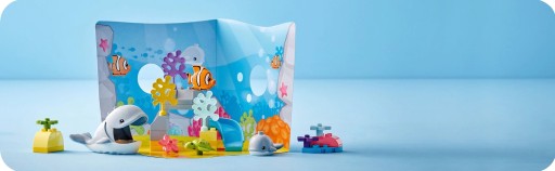 - Swobodna oceaniczna zabawa — zestaw LEGO® DUPLO® Dzikie zwierzęta oceanów (10972) to dla lubiących ryby przedszkolaków okazja do nieograniczonej, praktycznej, rozwojowej zabawy z morskimi zwierzętami w ich naturalnym środowisku