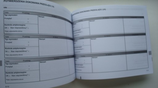 Z tyłu instrukcji znajduje się czysta (niewypełniona) książka serwisowa do dokumentowania przeglądów okresowych w postaci 18 rubryk do przeglądów i 15 rubryk do kontroli antykorozyjnej !!!