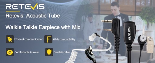 Retevis Zestaw słuchawkowy Walkie Talkie, zestaw słuchawkowy radiowy 2-pinowy kompatybilny z RT24 RT27 RT28 RT619 Baofeng UV5R BF-88E Radioddity GA-2S eSynic Walkie Talkies, ukryta rurka akustyczna (2 szt.)