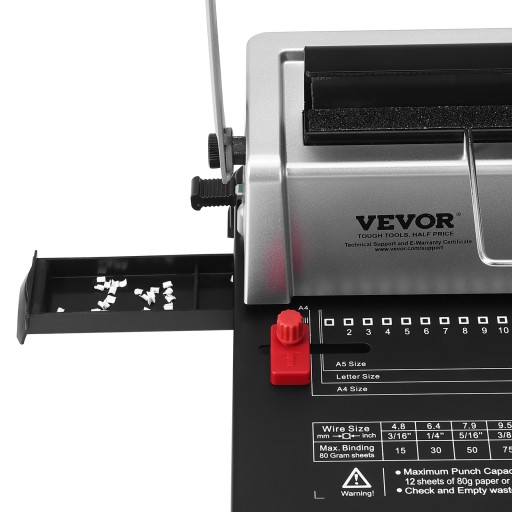 Łatwa w użyciu: Zaprojektowana z myślą o wygodzie użytkownika, nasza spiralna bindownica posiada regulowane prowadnice krawędzi i marginesy boczne, a także regulowane rozmiary grzebieni od 3/16" do 9/16" (grzebienie należy zakupić osobno). Łatwy w użyciu za pomocą prasy dźwigniowej z uchwytem.