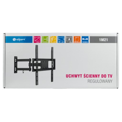 Stalowy wieszak na telewizor 1M21 to regulowany uchwyt, który możesz użyć dla max. wagi TV 35 kg. Uchwyt wykorzystasz do TV, które z tyłu posiadają rozstaw otworów w standardzie VESA 400 x 400. Dla Twojej wygody możesz regulować pochylenie i obrót, aby dopasować najlepszy dla siebie obraz najwyższej jakości, niezależnie od pozycji, w której oglądasz telewizję.