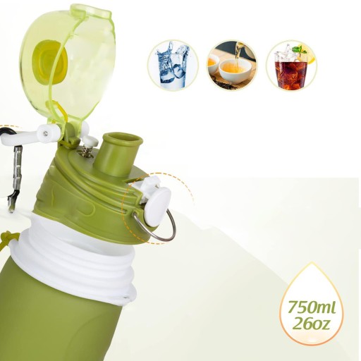 🎒💧Składana – składana silikonowa butelka na wodę, którą można złożyć do rozmiaru 1/3 w celu łatwego transportu.