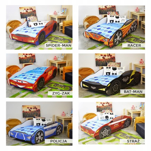 Wiele dzieci już od wczesnego wieku wyjawia dużą sympatię do samochodów. W dobie dzisiejszego rozwoju technologii nie powinno nas to specjalnie dziwić. Łóżko dla dziecka samochód zdaje się być zatem wymarzonym miejscem do spania dla naszych dzieci.Dla wszystkich dzieci przygotowaliśmy wiele różnych wzorów samochodów, do wyboru jest min. Policja,Straż,Wyścigówka,Zygzak,Bat-Car, Spider-Car,Supermen-Car. Każde dziecko znajdzie dla siebie odpowiedni model autka . Aby łóżko dziecięca samochód stało się jeszcze bardziej realne można wybrać wersję samochodu z kołami 3D. W każdym z naszych łóżek nasze maluchy będą prze szczęśliwe i na pewno będzie się im dobrze spało.