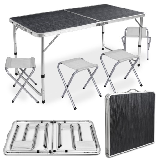 Stół wykonany z wysokiej klasy materiałów. Przemyślane połączenie aluminiowej konstrukcji stelaża z blatem z płyty MDF zapewnia solidność i stabilność stołu. Niewątpliwym plusem modelu jest jego niska waga. Wszystko dzięki użytego aluminium w procesie produkcji. Niska waga gwarantuje bezproblemowy transport. Stolik łatwo się rozkłada, a po złożeniu przyjmuje wygodną formę walizki. Wbudowany uchwyt ułatwia przenoszenie. Stół posiada trzypoziomową regulację wysokości, dzięki czemu możemy ją dopasować do swoich potrzeb.