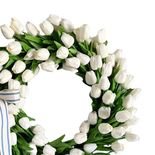 Wiosenny wieniec na drzwi biały kwiat ręcznie robiony 11,81 cala
