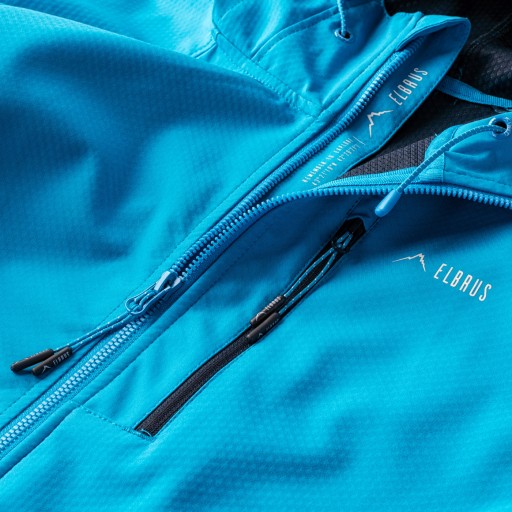 Męska kurtka softshellowa ENVISAT marki Elbrus posiada membranę o wodoodporności 10 000 mm H2O oraz oddychalności 5000 g H2O/m²/24h. Naniesiona na kurtkę powłoka DWR, czyli zewnętrzna impregnacja tkaniny, zwiększa wodoodporność materiału zewnętrznego. Wentylacja pod pachami umożliwia regulowanie termiki ciała. Zintegrowany, regulowany kaptur zapewni dodatkową osłonę przed powiewami wiatru. Elastyczne wykończenie rękawów z miejscem na kciuk zapobiega ich podwijaniu się.