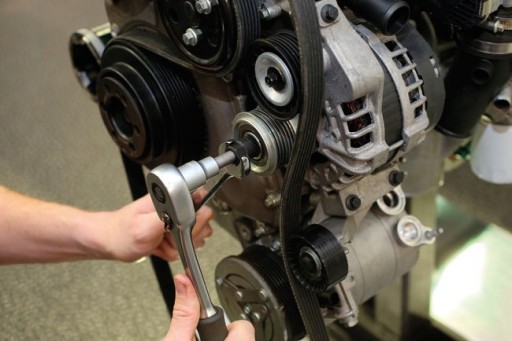 Klucze umożliwiają jednoczesne odkręcanie śruby mocującej koło pasowe (za pomocą odpowiedniego bitu) oraz przytrzymywanie koła ze sprzęgłem (za pomocą specjalistycznej nasadki).