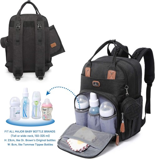 Uniwersalna konstrukcja : Plecak do przewijania o dużej pojemności (wymiary: 42 x 20 x 30 cm) z przenośną matą do przewijania, paskami do wózka, uchwytem na smoczek, kieszenią na suwak, pętelką na klucze i 5 izolowanymi kieszeniami. Mnóstwo kieszeni (2 duże przegrody i 18 kieszeni) we wszystkich miejscach. Schować ją spakować, chwycić i ruszyć w drogę. Wewnętrzne pomiary przewijak może również obejmować tablety i laptopy do 15".