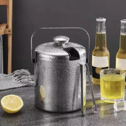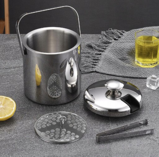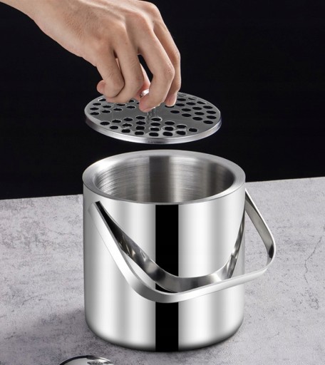- PODWÓJNA ŚCIANKA TRZYMA CHŁÓD - zestaw wykonany jest z trwałej stali nierdzewnej. Pokrywka i wiaderko mają podwójne ścianki, które dłużej utrzymują lód w stanie zamrożonym.