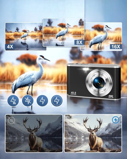 ЦИФРОВАЯ КАМЕРА 4K, 48 МП, 16-кратный ЗУМ, С ФУНКЦИЕЙ ЗАПИСИ, 32 ГБ