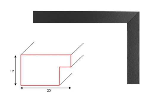 Profil ramki widziany z przodu ma 2 cm szerokości, a z boku 1,2 cm.