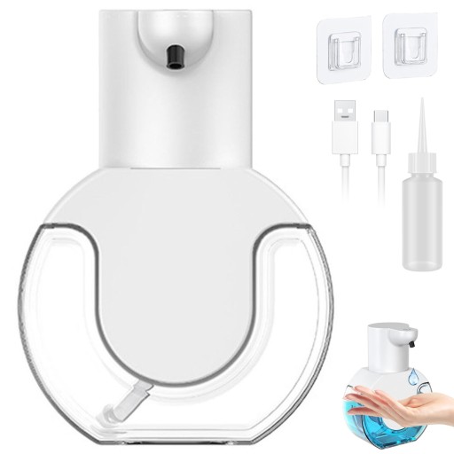 mocowanie do ściany, biały, elektryczny zasilacz mydła, bez dotyku, dozownik mydła piankowego, z gniazdem elektrycznym ABS, z zasilaczem przez USB, wodoszczelny IPX5 (420 ml)