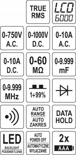 - Szybkość, dokładność i powtarzalność wskazań multimetr zawdzięcza nowoczesnej konstrukcji płytki sterującej oraz wysokiej jakości sondom pomiarowym,