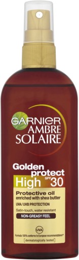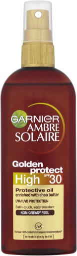Pielęgnujący olejek do opalania SPF 30 Garnier Ambre Solaire Ideal Bronze wzbogacony o masło shea chroni przed szkodliwym promieniowaniem UVA i UVB oraz przedwczesnym starzeniem się. Wyróżnia się nieklejącą konsystencją, przyspiesza proces opalania i pozostawia skórę naturalnie rozjaśnioną.