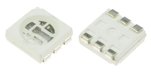 Dioda LED SMD PLCC6 5050 RGB. Wszystkie 3 kolory mają osobno wyprowadzoną katodę i anodę. Cena za 1 szt.