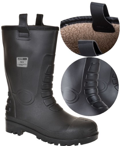 W pełni wodoodporne i ocieplane sztucznym futerkiem buty ochronne przeznaczone do pracy w lekkim i ciężkim przemyśle. Model wyposażony został w stalową wkładkę antyprzebiciową.
