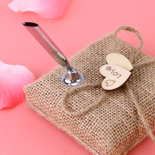 ✅Pakiet zawiera jutowy uchwyt na długopis i srebrny długopis.