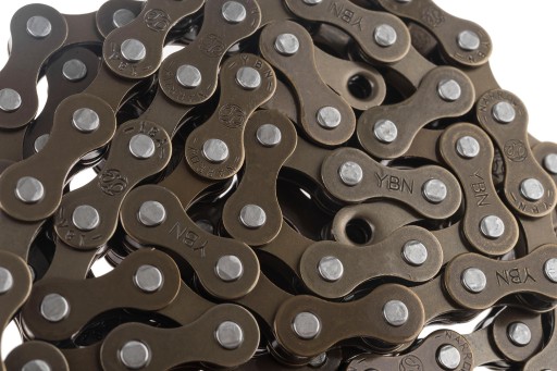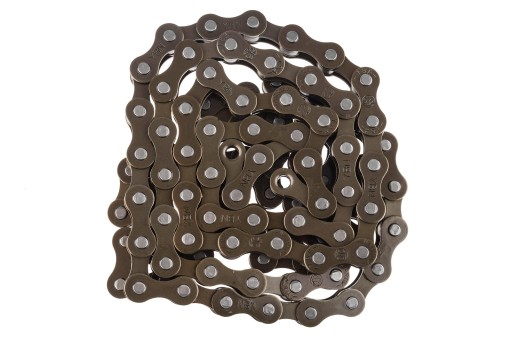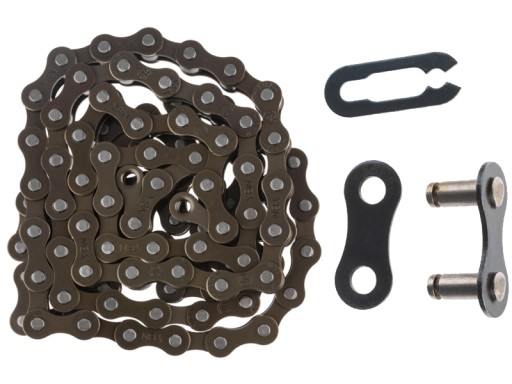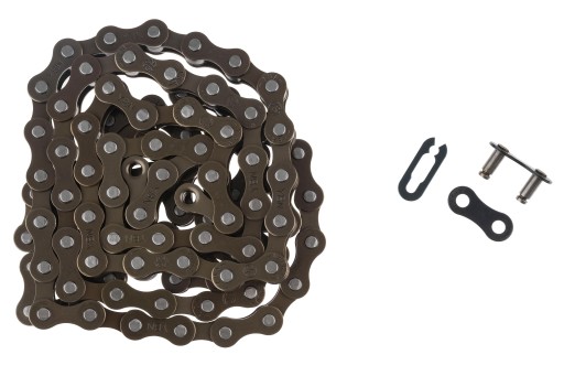 Łańcuch rowerowy S410 do zębatek 1- rzędowych, 106 ogniw, rozmiar: 1/2x1/8 cala, z ogniwem złącznym, długość pina: 8,6 mm, dodatkowo kompatybilny z Shimano: CN-NX10, CN-NX01, KMC: Z410, kolor brązowy