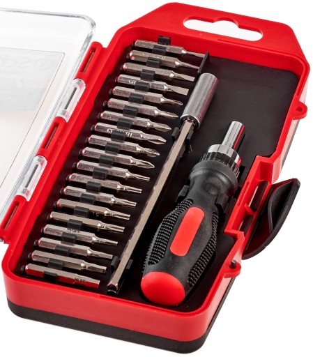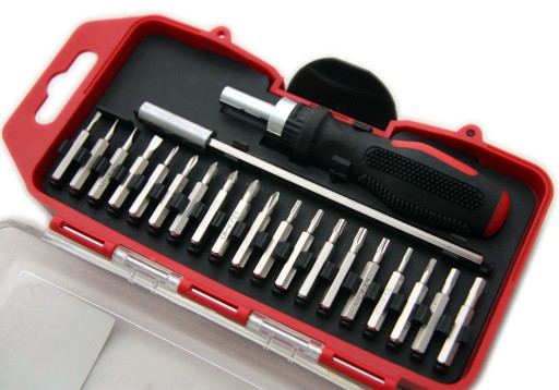 Zestaw zawiera bogaty komplet standardowych i specjalistycznych typów końcówek o długości 25 mm składający się z 21 elementów.