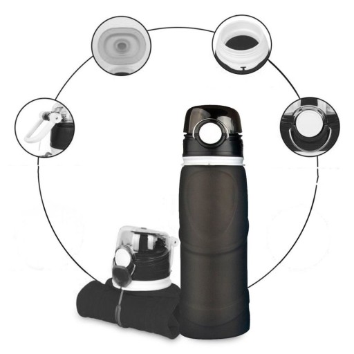 - Składana silikonowa butelka na wodę, którą można złożyć do rozmiaru 1/3 dla łatwego transportu.
