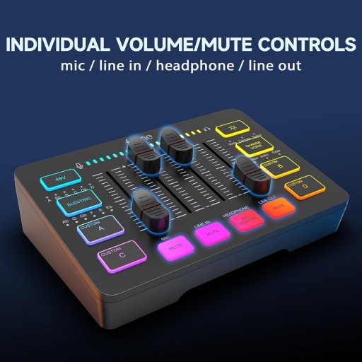 Przyciski wyciszenia i monitorowania z przodu, a nie z tyłu, ułatwiają korzystanie z interfejsu audio. Mikser dźwiękowy obsługuje cztery wstępnie nagrane niestandardowe przyciski, które można nagrywać i aktywować za pomocą jednego przycisku, aby zaoszczędzić więcej czasu na późniejszej obróbce. Sześć trybów zmiany głosu zmienia Twój styl wyjściowy. Dwanaście trybów automatycznego tuningu zmienia ton Twojego głosu.