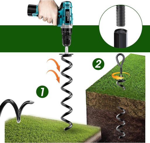 Nasze kotwy gruntowe są wykonane z wysokiej jakości stali i można je przymocować za pomocą wiertarki, wiertarki akumulatorowej lub klucza grzechotkowego. Wystarczy odkręcić oczko od tulei, użyć klucza nasadowego i zamontować kotwę uziemiającą.