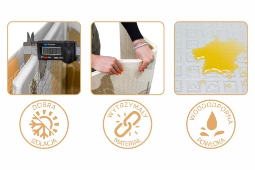 - Mata pokryta jest wodoodporną powłoką, która chroni matę przed zalaniem, zabrudzeniem, czy wilgocią.