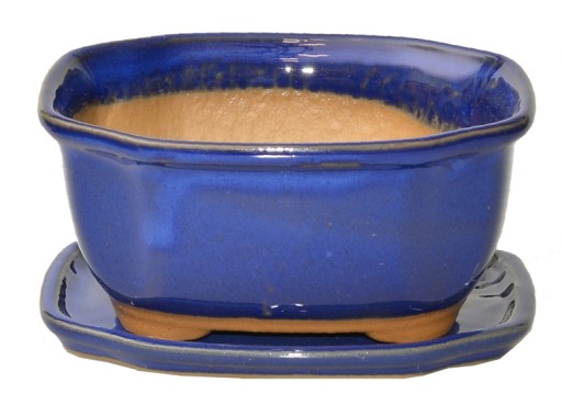 Doniczka ceramiczna z podstawką, ośmiokątna z zaokrąglonymi narożnikami, szkliwiona, doskonała na drzewko bonsai
