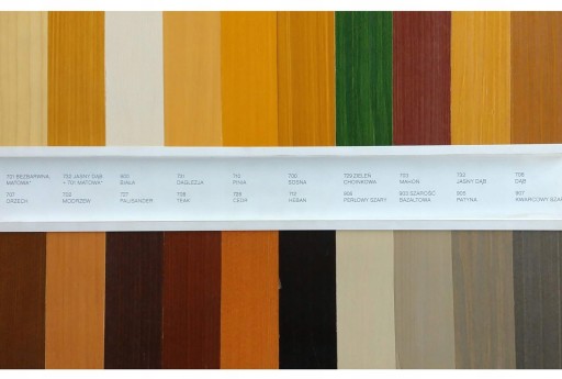 - Lazura Olejna do Ochrony Drewna jest powłoką transparentną. Otrzymany kolor powierzchni zależy więc od naturalnego odcienia pokrywanego drewna i może się różnić od próbek na wzorniku. Dlatego każdorazowo – zwłaszcza w przypadku nieznanego podłoża – zaleca się wykonanie próby.