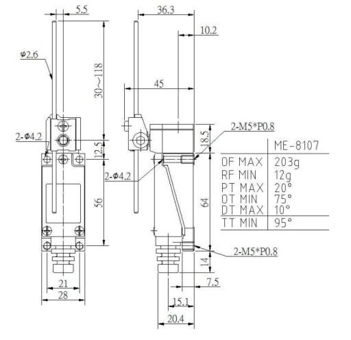 Концевой выключатель ME-8107 Концевой выключатель Регулируемый рычаг со стержнем