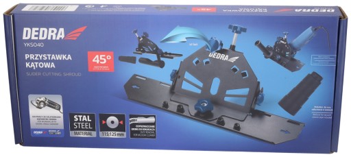 Przystawka kątowa DEDRA YKS040 to wysokiej jakości narzędzie do precyzyjnego cięcia płytek pod kątem 45°. Jest kompatybilna ze szlifierkami z rozmiarem tarczy 115mm oraz 125mm.