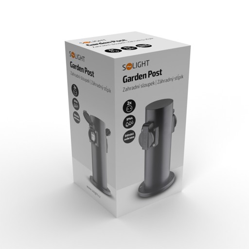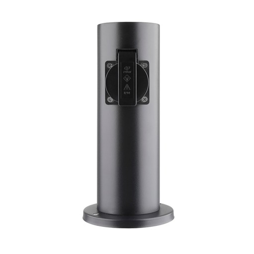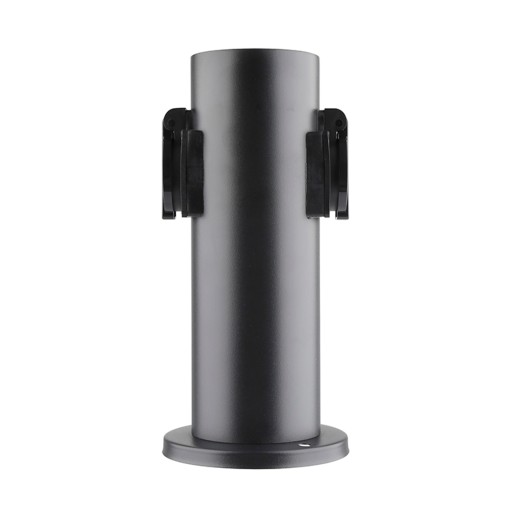 słupek rozdzielczy wykonany ze stali nierdzewnej zasilanie elektryczne terenów zewnętrznych, ogrodów i sadów 2 gniazda max 16A, 3680W, zabezpieczenia przed dziećmi oraz samozamykające osłony chroniące przed wilgocią i kurzem skrzynka przyłączeniowa z uziemieniem do podłączenia przewodu zasilającego wewnątrz podstawy słupka z otworami montażowymi do powierzchni stałych kolor: czarny mat, czarny zaślepki na gniazda stopień ochrony: IP44 wymiary: słupek - 7,5 x 7,5 x 23cm podstawa - 11 x 11cm