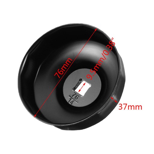 Description: Material: Steel Size: 76 mm x 14 Flutes Easy for installation and removal of oil filter Allows the spin-on filter to be turned with a 3/8" drive socket wrench Special design to fit oil filters found behind crank sensor without crushing it