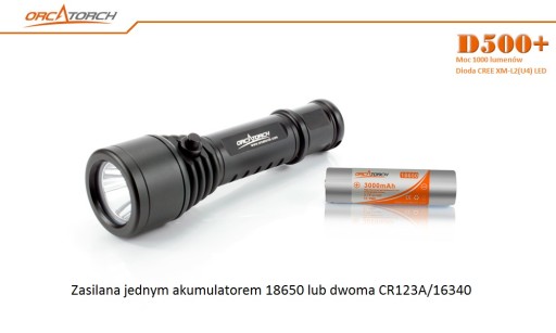 * Zasilanie akumulatorami 1x 18650, 2x CR123A, 2x 16340 litowo-jonowymi